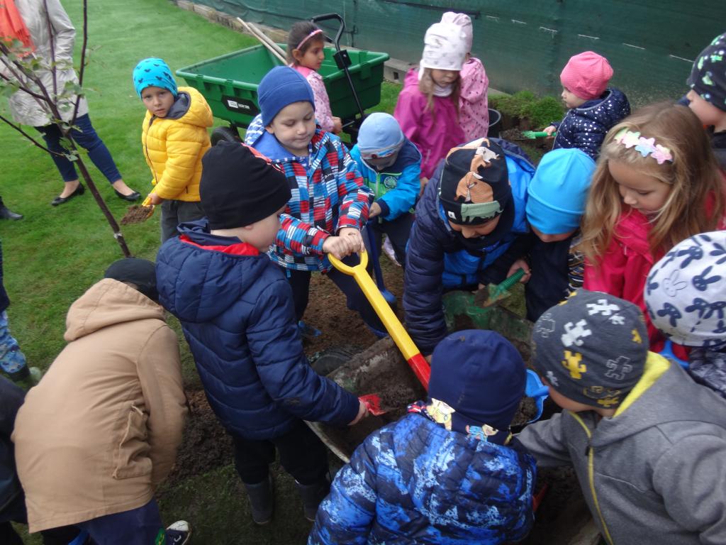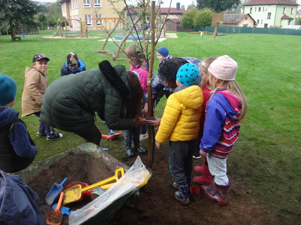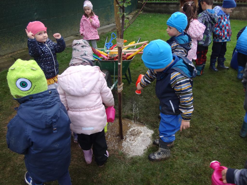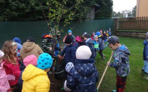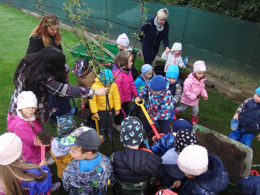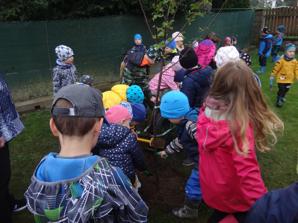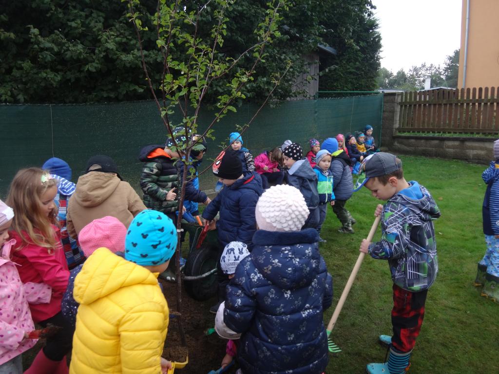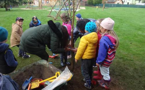 Na školní zahrdě jsme si společně s dětmi v rámci projektu "Zasaď si svůj strom" vysadily druhý ovocný stromek, a to višeň.