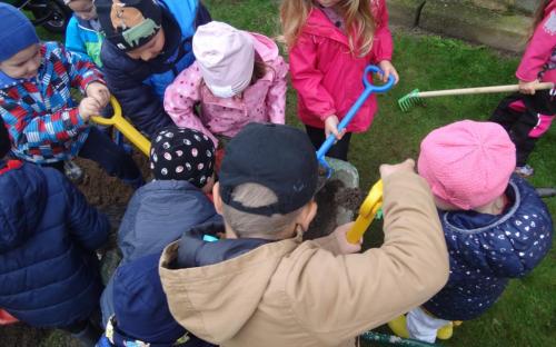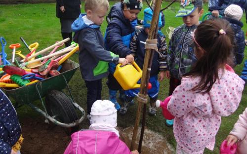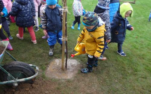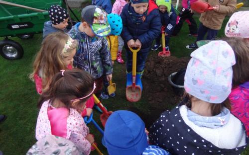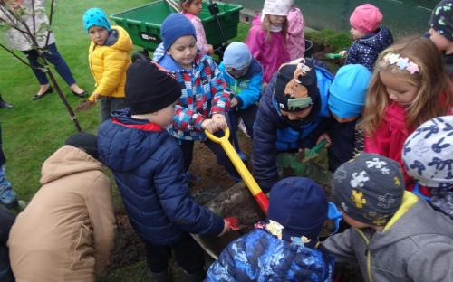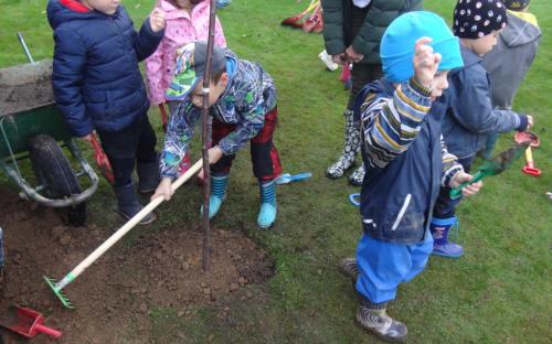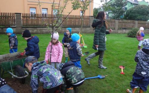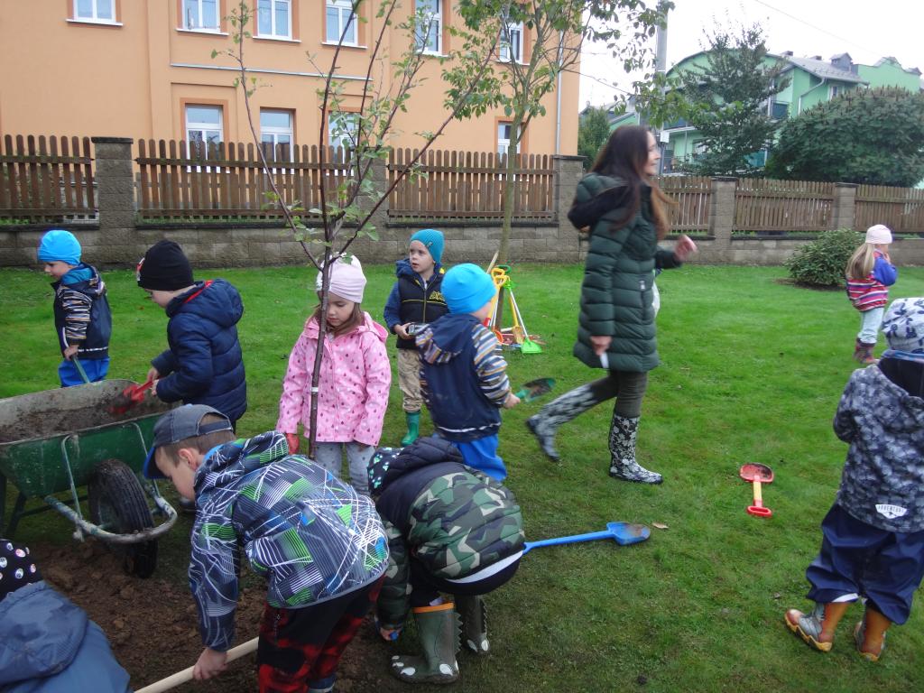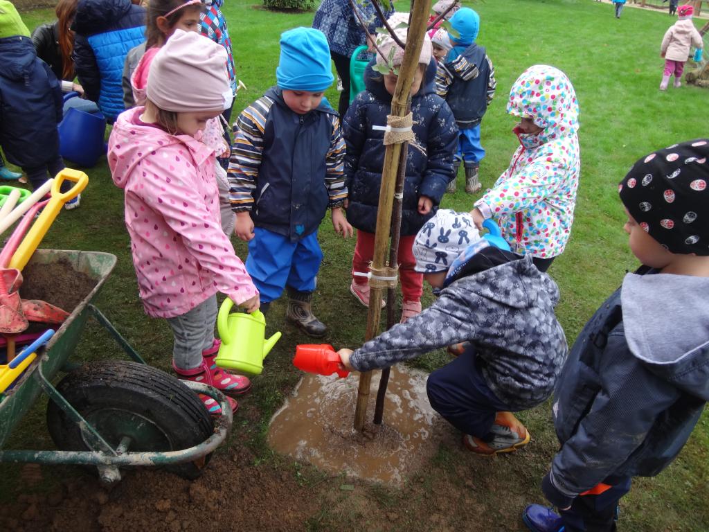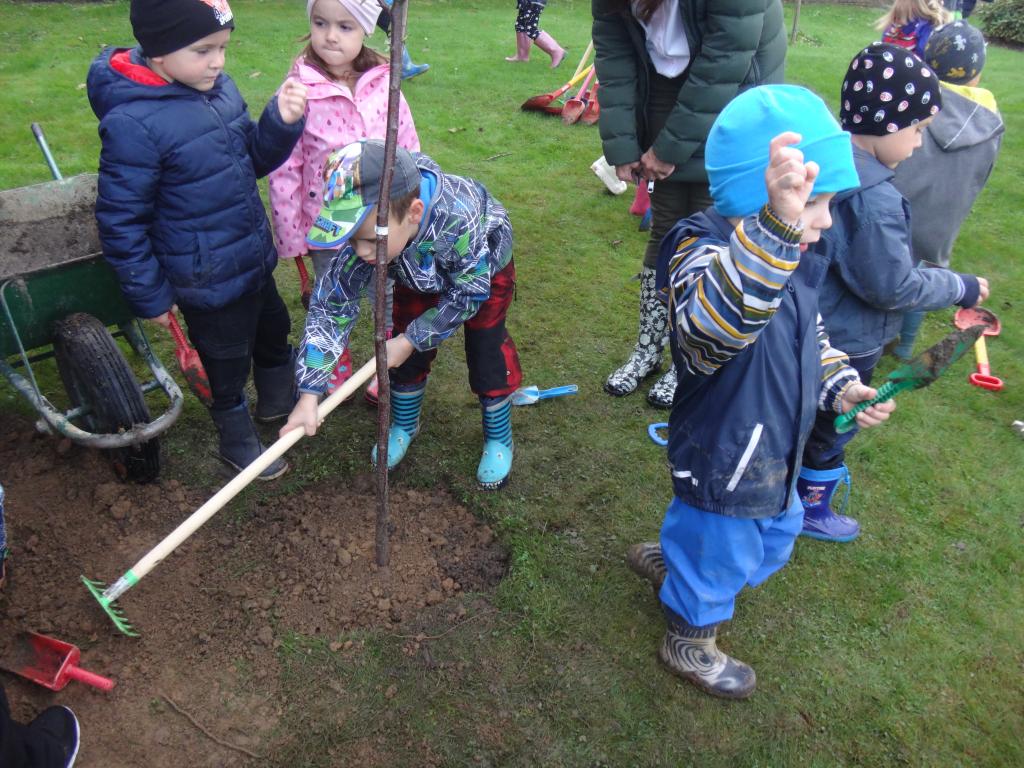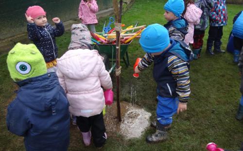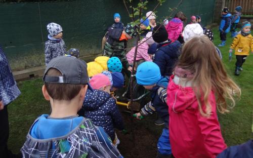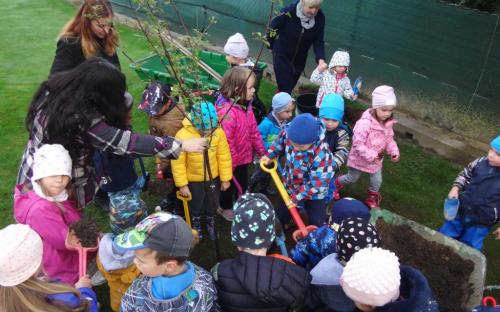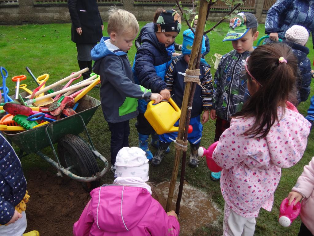 Na školní zahrdě jsme si společně s dětmi v rámci projektu "Zasaď si svůj strom" vysadily druhý ovocný stromek, a to višeň.
