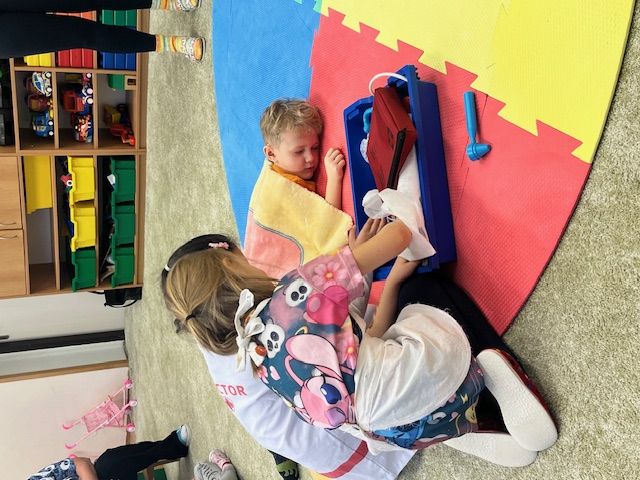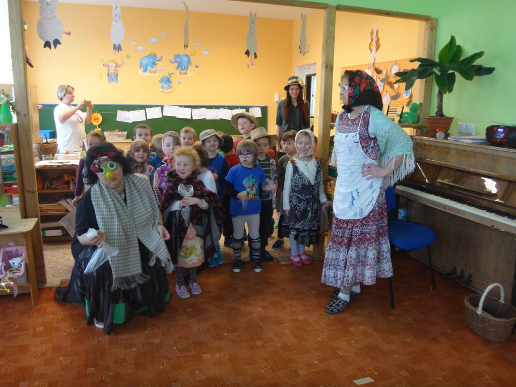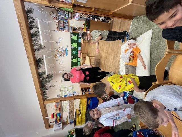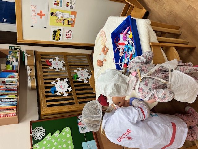 Dnes nás měli navštívit záchranáři a děti seznámit se základními pravidly chování v situacích ohrožujících zdraví a bezpečnost. Bohužel byli odvoláni k zásahu, a tak jsme se rozhodli improvizovat a děti zapojit do zinscenování zásahu při pádu chlapce na ledu při cestě do školky. Děti si vyzkoušely práci záchranářů a seznámily se s postupem přivolání pomoci a některými prvky poskytnutí první pomoci. Děti se tohoto úkolu bravurně zhostily a spolupracovaly na záchraně "zraněného " Eliáška - viz fotodokumentace.
